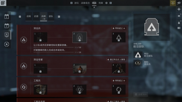 本作的兵种系统也回归了经典的突击、支援、工程与侦查四大核心兵种,但也同时通过“训练之路”机制和多样的装备搭配实现了玩法的个性化细分。