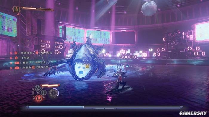 奴延鸟之型的攻击虽缓慢但也更强力,可以强制破坏一些敌人的霸体与防御状态。同时也能在资源充沛时穿插于普通连段中,打出更具想象力的高伤害连击。但这并不意味着玩家可以像《DMC》里的“天使、恶魔”武器那样在攻击中瞬间切换形态。因为使用奴延鸟之型攻击需要消耗能量,不能无脑释放,其定位更像一种“对策技”。举例来说就像《仁王》中的“妖反”,最常用于化解敌人头上冒叹号的高威胁红光攻击。