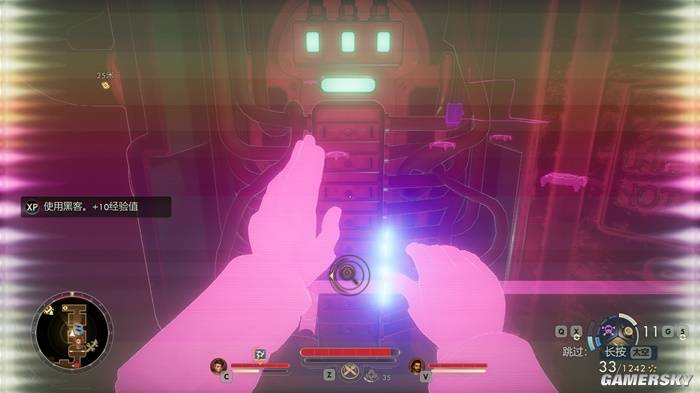 技能就是“近战”、“说服”、“黑客”之类代表角色能力的指标,一项技能等级越高,就能在流程中解决难度更高的障碍。但关卡的设计也覆盖了多方面的技能导向,很少存在“只有一种解法”的设计。好比当角色的“观察”等级够高,就可以直接在墙面上发现暗格的存在,而不需要在终端上通过“黑客”技能解锁它。