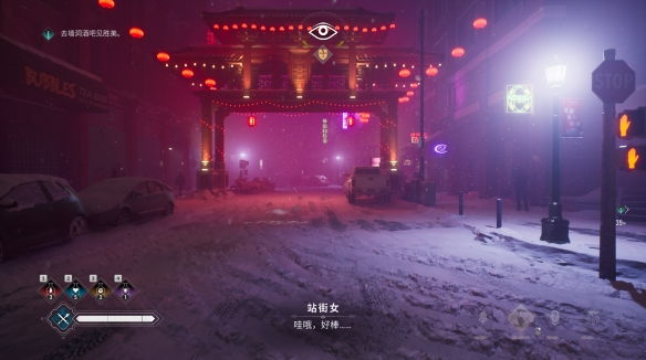 路边街道空荡缺乏生气,让当代的夜城却显得沉闷而陈旧。NPC分布稀疏,互动近乎于无。对比《赛博朋克2077》的场景氛围塑造,《Bloodlines 2》在场景的氛围塑造上显然未能达到预期,难以营造出应有的沉浸感。