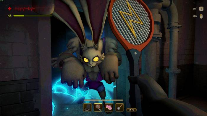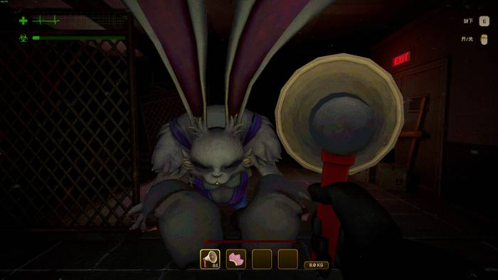 就比如,当我凭借着微弱的灯光在房间中翻箱倒柜,寻找那些稍微值点钱的垃圾时,忽然耳机里就传来了一阵急促的脚步声,一回头一个戴着拳击手套的兔头壮汉已经站在了我的面前,在我没反应过来的情况下两拳直接给我干趴了。