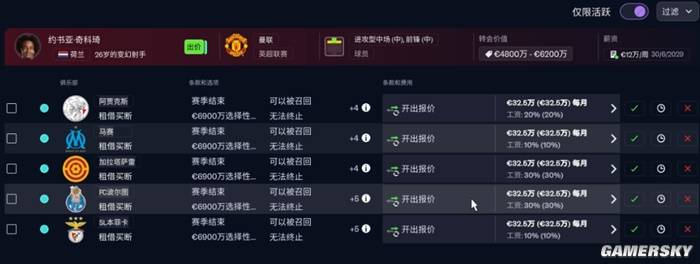 而等到我打了几个赛季已然三冠王,球员们多半荣誉满身时却又卖不掉了。即便他们周薪都被压得只有10-20万欧左右,在转会市场上也乏有人问津,就算有人报价,也都是租借+选择性买断一口价合同的白嫖怪——都是把人低价用上一个赛季然后再退货给你。