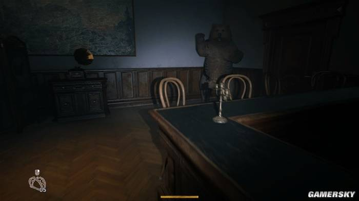 当然这也得归功于一些场景设计上的恶趣味——好比一只棕熊的标本恰好被放在门背后,你推门进来的时候可能完全没有注意到,等到你要离开房间时,才发现黑咕隆咚的角落里有个正在对你张牙舞爪的庞然大物,可以说是很难不被吓到了。