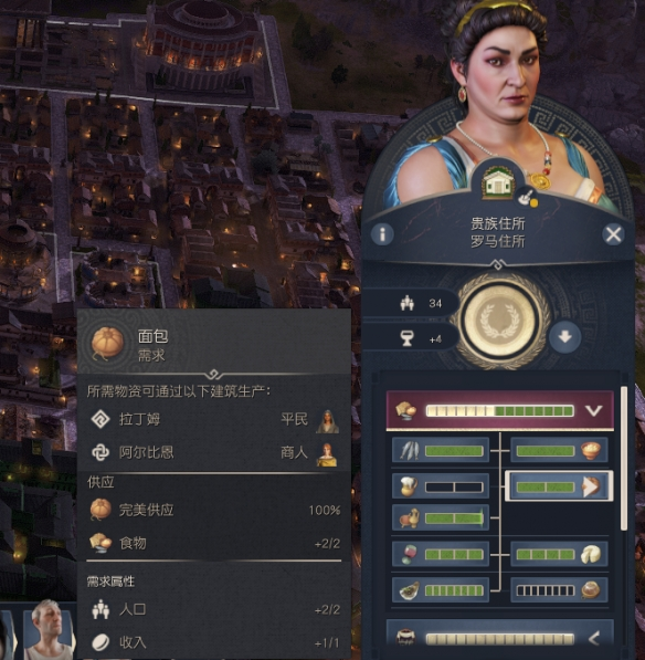 阿尔比恩的核心魅力,在于 “罗马化抉择” 带来的策略复杂度。当居民升级至二级人口时,玩家需在凯尔特原住民与罗马化凯尔特人之间做出选择:两类人口的发展需求、产物类型、建筑风格截然不同,且各自延伸出三个独立阶级。更关键的是,阿尔比恩的罗马化居民与拉丁姆的纯罗马居民产出存在差异,这意味着玩家需同时平衡总计 9 种阶层的供需关系。