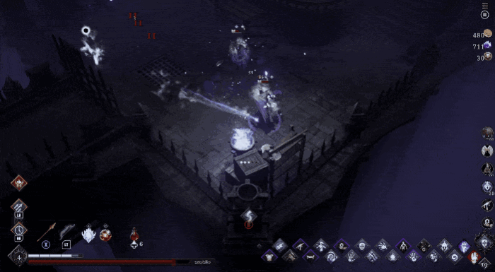 《冥界契约》还有一个比较独特的设计:它消耗能量释放的法术,全是由类似替身的鬼魂所打出的“鬼魂技能”,释放后鬼魂还会继续留在场地上一段时间,而你随时可以释放“异界穿行”直接瞬移到鬼魂的位置上。由于鬼魂可以同时存在多个,这就让《冥界契约》的战斗上限实际上被拉得非常高——只要你能量充足,那么就可以满场乱飞,让敌人根本碰不到你。