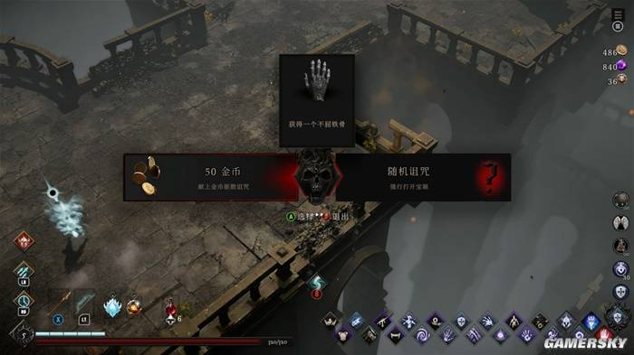 每章的路被拆分成了一个个房间,你则需要根据收益来从中挑选自己想要的,而房间虽说功能性上一应俱全,但场景雷同感有些重,花样也实在说不上多——总共只有主角强化BUFF、鬼魂强化BUFF、遗物、金币、商人、回复药几种。房间中还偶尔会出现随机宝箱或随机事件来给你提供一些额外奖励,不过其存在感只能说是聊胜于无。