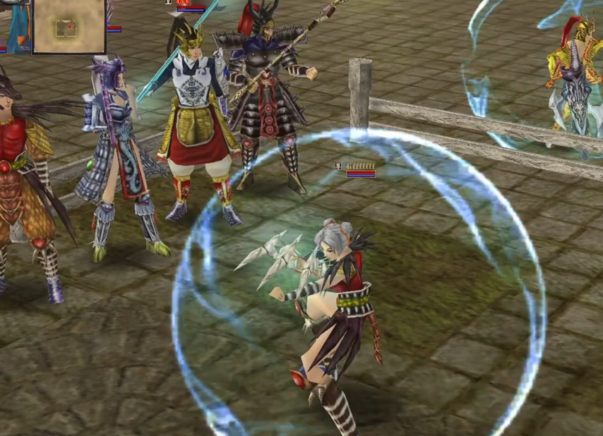 除了一对一的车轮战,十对十的门派团战也极具趣味。双方阵营各有一根图腾柱,必须守护好己方图腾柱,一旦图腾柱血量降至一滴,就算作战失败,所以哪怕团队最后只剩一人,也不能只靠走位拖时间,让团战的策略性和紧张感直接拉满。现在想来,这可能就是最早期的“夺旗模式”。