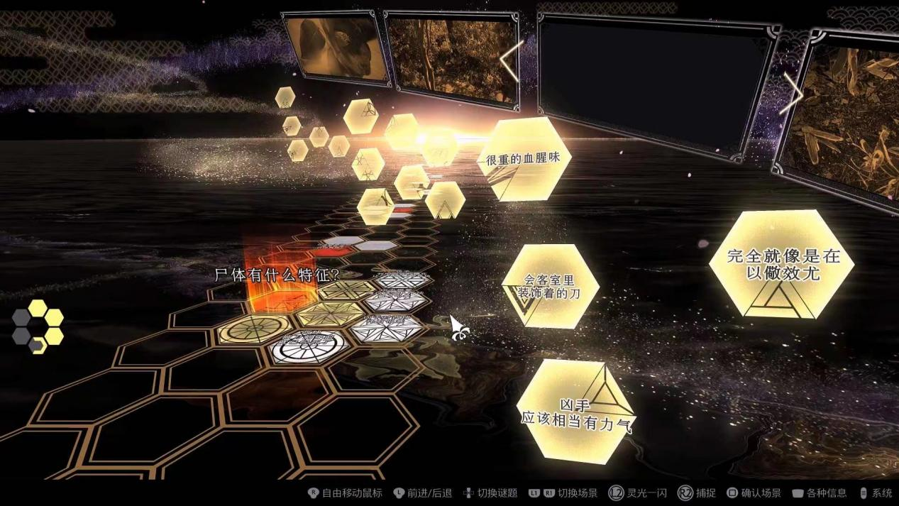 从推理小说的设定上来说,这个部分可以看作是在还原小说中侦探分析案件前后逻辑的过程。就像福尔摩斯有他的记忆宫殿一样,本作的主角——推理作家河河见遥,也有着属于自己的脑内推理空间,在这个由无数六边形组成的逻辑之脉上,存在着围绕案件而提出的各种问题,玩家必须通过假设来将整个逻辑之脉拼凑完整,之后才能进入后续的解答篇。