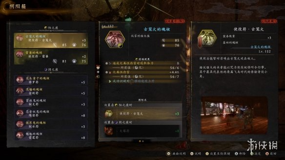 原有的阴阳术与魂核被整合为全新的“阴阳箱”。魂核装备于“阳之座”可召唤妖怪助战并提供属性加成;装备于“阴之座”则对应使用各类增益符箓,让每个魂核的携带都成为一次主动技能与被动加成的深度权衡。与此同时,过去魂核提供的“妖怪技”被 “守护灵技” 取代——消耗灵力,即可释放取决于当前守护灵的两个独特技能,其核心战略价值在于,随着流程的推进,守护灵技将同样能够反制敌人的红光绝招。