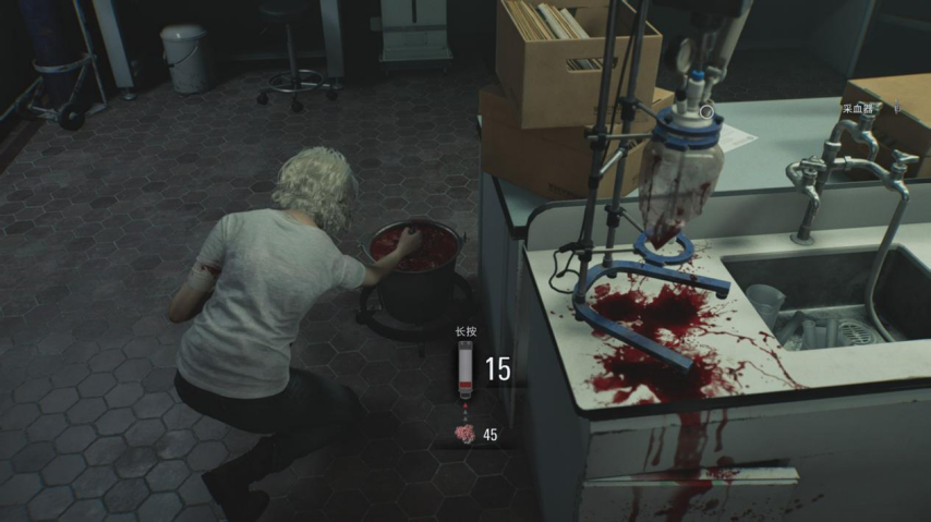 格蕾丝专属的合成机制则进一步扩展了系列的资源玩法。格蕾丝可以利用注射器从丧尸尸体、血池和血桶中提取“变异血液”,这是本作中的万能合成素材。提取需要一定时间,注射器还需要占用1格背包,但变异血液可以合成强化弹药、急救喷雾、防止丧尸二次变异的溶血剂等重要道具,可谓是富贵险中求。