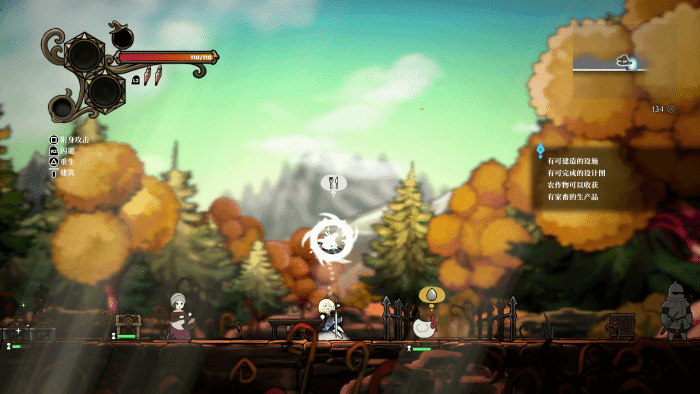 除了为战斗提供支援外,《不寐之境:女巫与魔咒》的家园建设也保留了种田游戏重要的造景和基建功能。在本作中造景的体验有点类似《泰拉瑞亚》,由于本作是一款2D游戏,因此建筑的空间大都在垂直结构上。并且游戏为玩家提供了相当丰富的装饰建筑,你可以按照想要的布局,把破败的村落一步步打造成梦想中的女巫之家。其中有很多装饰道具,还需要击杀特定的敌人,获取特殊材料来制作,这也进一步提升了我重玩的动力。