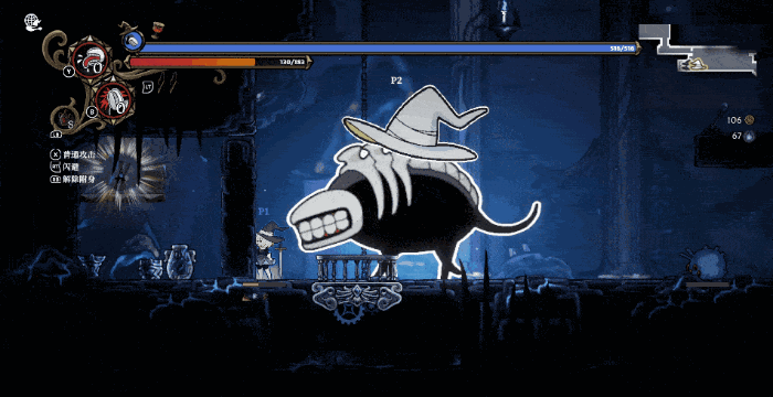 但好在本作还赋予了玩家一个特殊的能力,用来提升战斗的趣味程度和容错率。虽然本作名为“女巫和魔咒”,但实际上玩家的本体并非魔女,而是魔女头顶被诅咒的帽子,它赋予了玩家一项独特的能力——附身。当你击败一些特殊的怪物后,会发现它们的尸体并没有像其他的怪物一样消失。此时就意味着你可以把帽子附身在它们的尸体上,从而获得全新的模型和能力。