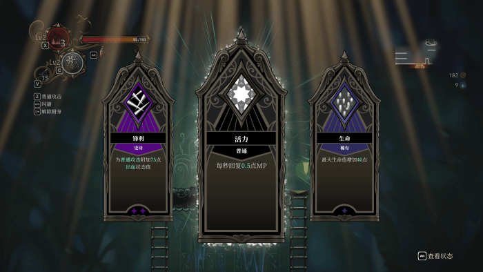 先来聊聊本作核心的类银+Rougelite玩法吧。就像前文说的那样,《不寐之境:女巫和魔咒》这部分的体感有点像《死亡细胞》和《空洞骑士》的结合体。既有各种随机的成长要素,也有类银游戏丰富的关卡和敌人设计。