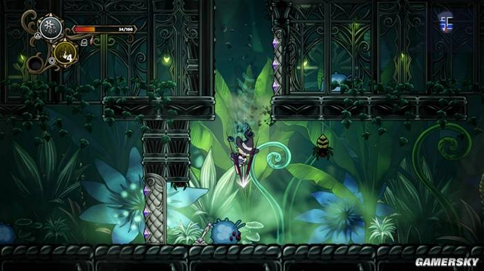 游戏关卡的类型也足够丰富,从一开始的遗迹、植物园,到后面的地下城,水下、空中等复杂的地形和岔路应有尽有。你既能在本作中体验到足够的探索乐趣,也能在重复游戏中感受到足够的变化。随着进度的推进,玩家也能在地图中永久地发现诸如二段跳、空中冲刺之类的新能力,让探索的过程越来越得心应手。