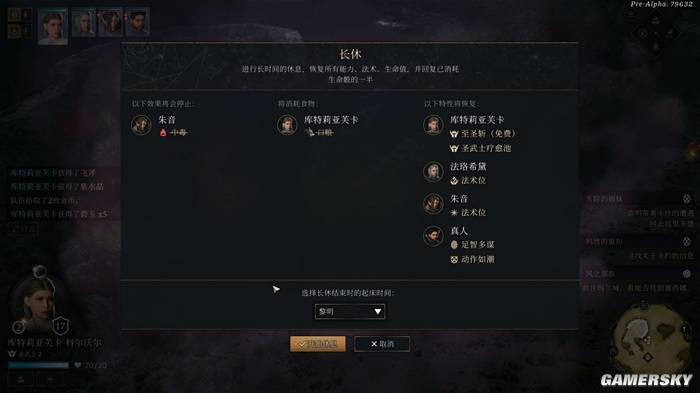 如果行动力降到了黄条内,就意味着你此时再赶路,会让队里身子骨比较弱的法师、术士们陷入力竭,承受检定上的减值;而如果行动力已经耗光,你就只能选择长休来度过这一天。
