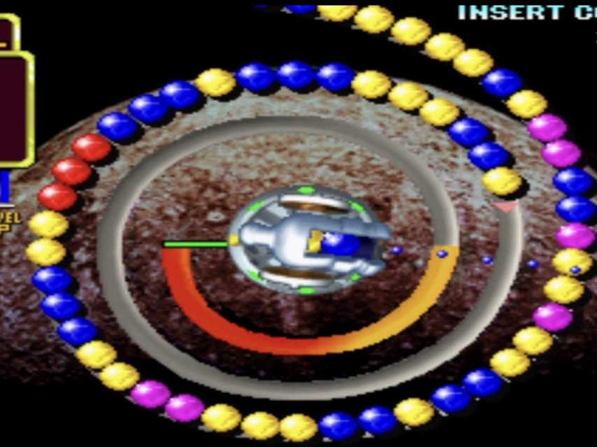 时间倒回至1998年,这家开发商在街机平台上推出了一款名为《Puzz Loop》的游戏。正如前文所提到的,在这款游戏中,玩家同样需要控制中央方向,将彩色珠子打入轨道;同样是凑齐三颗或以上同色珠子相连即可消除;甚至连“连锁”和道具的概念,它也早已一应俱全。简单来说,《祖玛》与它的核心玩法并无太大差异。