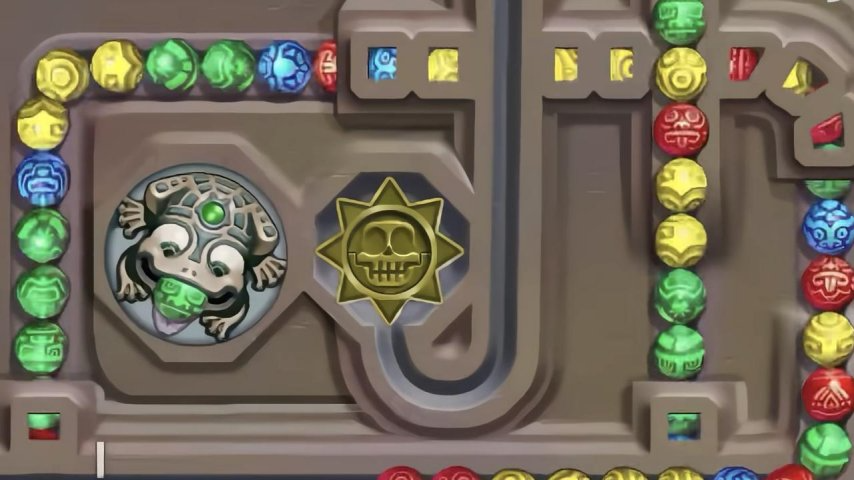 尤其是《祖玛》的威胁设计也很到位。众所周知,一旦开局,玩家就进入了“死亡倒计时”,珠子不断往前直到抵达终点,而这时游戏也会直接结束。因此,当你看着长长的珠子串一点点逼近终点时,那种压迫感和焦虑感是始终存在的。而在千钧一发之际打出关键一击,把整串珠子硬生生“推”回去的瞬间,那种化解危机的感觉,非常解压。