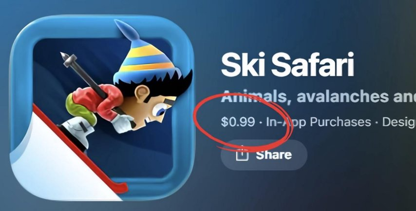 2012年4月,《滑雪大冒险》正式在iOS平台上发布。虽然0.99美元的定价并不算高,但凭借魔性的玩法和洗脑的BGM,上线首周便冲入了美国、加拿大、澳洲等多个地区App Store付费榜的前五名,也曾多次问鼎全球多个国家付费榜的榜首。