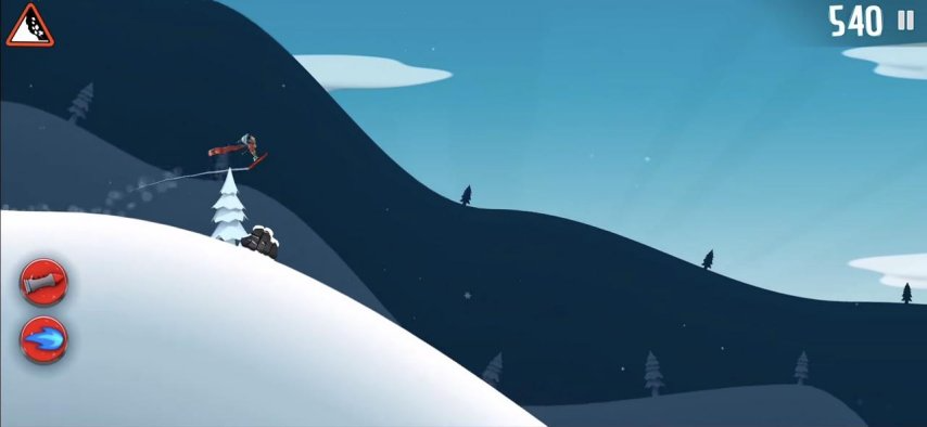 玩家起跳得越高,落地时角度越完美,速度就越快。与此同时,随着时间的推移,身后那场紧追不舍的雪崩也在不断加速,使得单局游戏体验格外紧张与刺激。