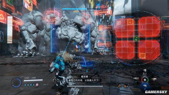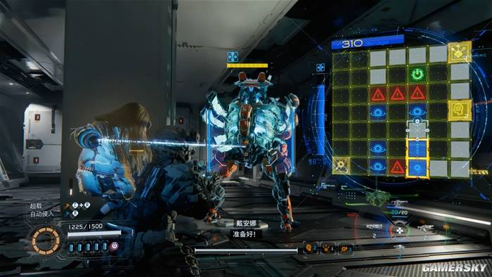 设定上,玩家遇到的几乎所有敌人都是机器人,而它们的外壳都拥有高额的伤害减免,较难直接通过武器造成伤害。只有玩家背后挂载的娇小人型单位“戴安娜”,才拥有破解敌人防御的能力。因此在战斗中,玩家举枪瞄准后需要先操作屏幕右方的破解面板,进行一番迷宫走格子操作,成功入侵解除敌人防御后,才能进行有效输出。
