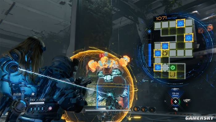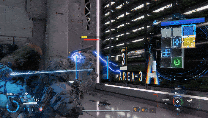 包括主武器的子弹无需手动装填,但必须等待其缓慢回复的机制,也是依附于这个原理。在破解过程中,玩家也能观察到敌人的动向,从而用跳跃、冲刺甚至部分入侵节点的Debuff来应对敌人的各种攻击,并在不中断破解进程的情况下,实现战斗的交互。