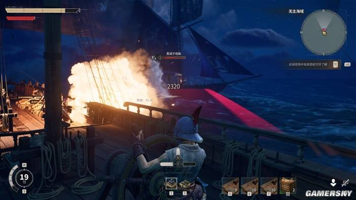 开局不久后,主线任务就会赠送给你一艘双桅战舰。和《盗贼之海》这种偏硬核,需要多人协作开船的游戏不同,《风启之旅》将航行和战斗的操作进行了大幅简化——无论在航行中升帆降帆、还是在战斗中开炮跳帮,都只需你一人操舵即可完成。