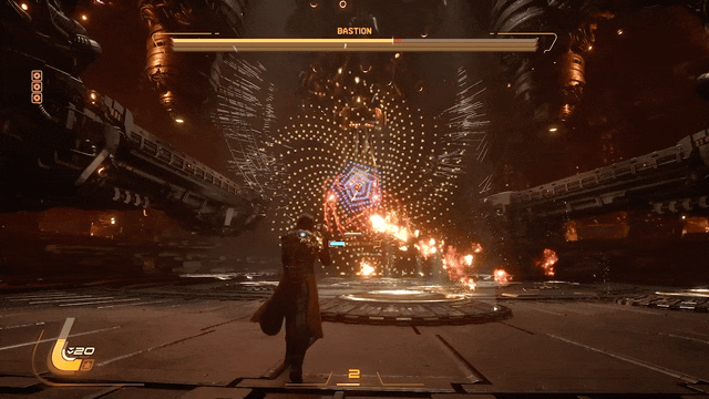 先聊聊游戏最核心的战斗机制,与市面上常见的射击游戏不同,《沙罗周期》的战斗与敌人设计是完全围绕着“弹幕”设计的。在一款3D游戏里躲弹幕听起来可能有些怪,但说真的,Housemarque做得挺有意思。