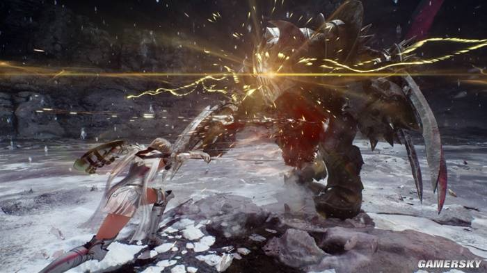 战斗系统和角色性能加入了一些现代化改动——人物有跳跃动作,生命药水在点出精通前依旧是缓回的且喝药动作爆长。怪物的特殊攻击现在会有红蓝光提示,硬直条也通过UI直观呈现,闪避和防御的判定相对宽松,且每个角色都可以通过精确应对敌人的特殊攻击来获得大量战斗资源。菲奥娜依旧是盾姥姥,靠一脚“永芳”教小红做人。利斯塔的狂怒是重击而非暴击出闪。黛莉娅还是那个轻击毫无霸体需要靠着空挥终结流星与星裂来蹭刀的角色。