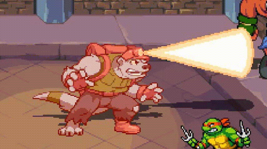 从玩家操纵的主角团,到游戏中出场的各种杂兵和BOSS形象,甚至整体的界面布局,《忍者神龟:施莱德的复仇》都与经典的街机版游戏有着相当高的重合度: