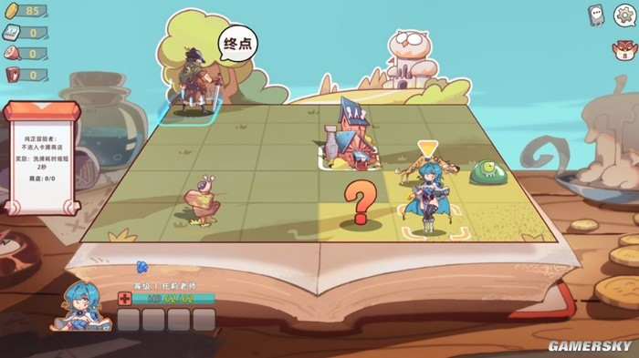 和许多爬塔类卡牌游戏相似,《勇者赶时间》中的玩家也需要先进行一番探索,并通过击败BOSS前往下一张地图。不同的是,本作将每张地图采取了棋盘式的呈现样式,而玩家将通过走格子的方式,依次触发战斗、商店或事件。