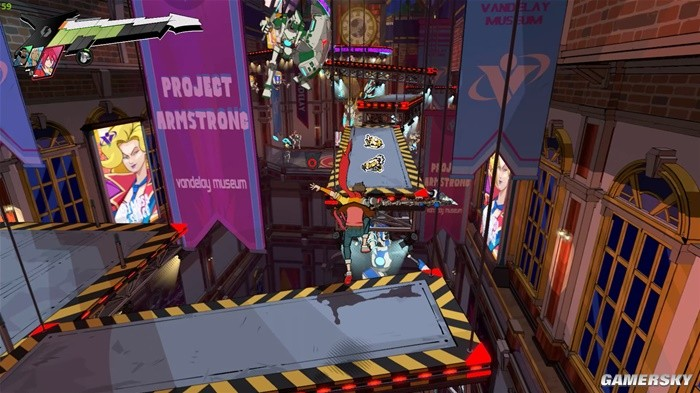 游戏的关卡设计,也有些过于简单和古板,我无法否认制作者是有意为之的可能性,不过这确实让游玩的体验有些重复。《Hi-Fi RUSH》的画面风格非常华丽,可以在视觉上保持新鲜,但在探索的过程中,还是能感觉到许多关卡的结构,从头到尾几乎是没有变化的——先是经过一段漫长的走廊或电梯,再来到一片大型的圆形或方形场地进行几波怪物战斗,如此往复循环直到来到BOSS房。